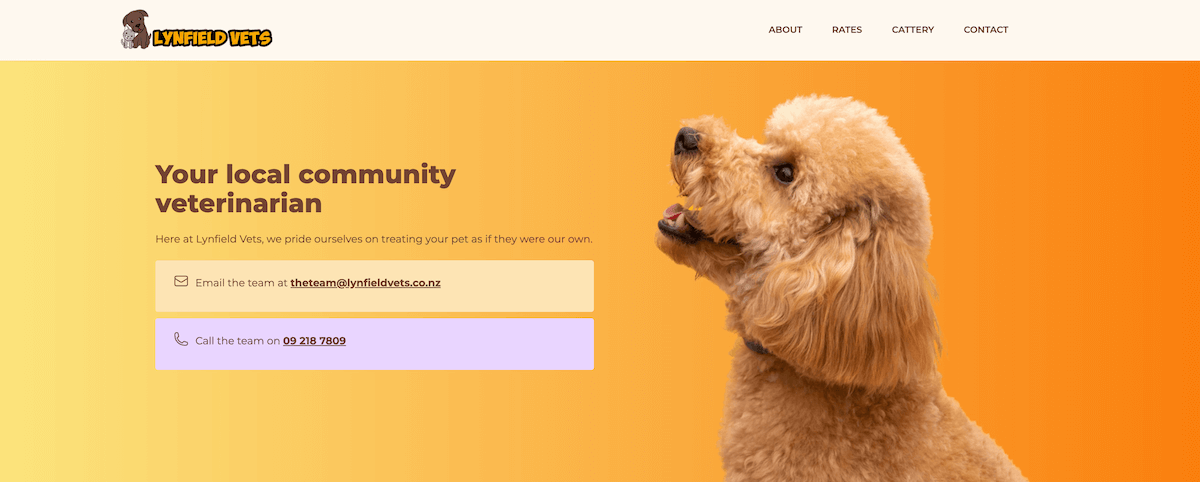 Lynfield Vets is a long-term client with whom I have an informal maintenance arrangement. This website serves their main clinic in Auckland.